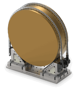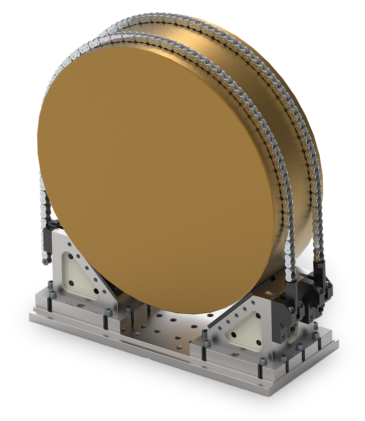 The new BP40-VXL is constructed of FCD45 High-Strength Cast Iron and comes equipped with two heavy 1.25” pitch chains. The base plate measures 16″ x 47″ x 2″ and can be removed for use with larger parts.